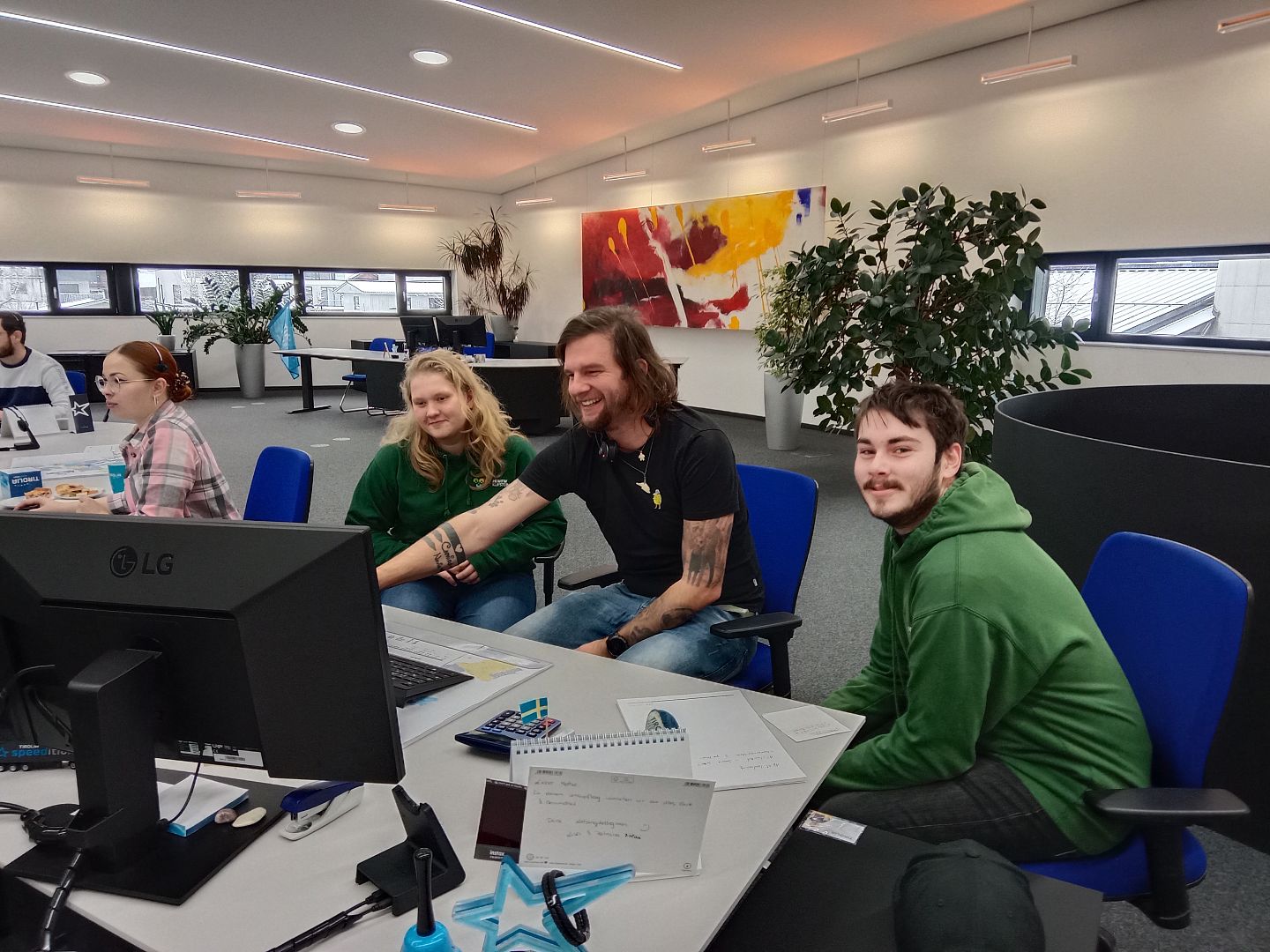 Anschließend fand eine Führung durch das Unternehmen statt, das sich als topmodern und sehr beeindruckend präsentierte. Ein besonderes Highlight war das sogenannte „Freiluft-Büro“, das große Begeisterung auslöste.