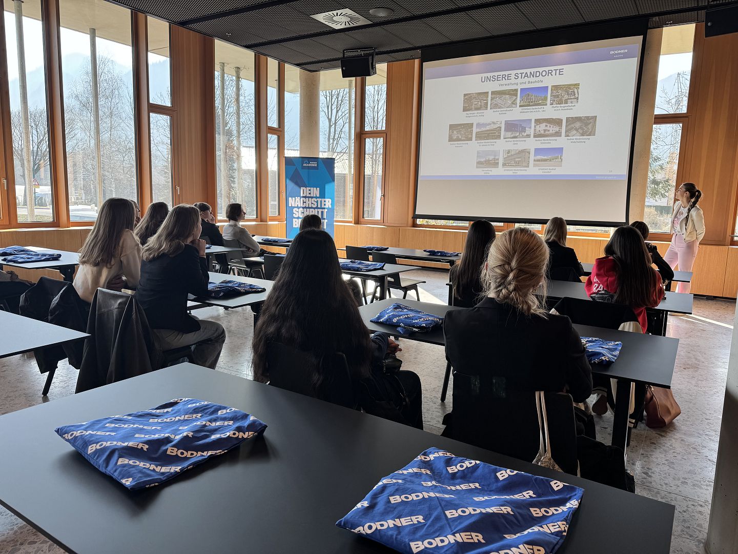 Ein besonderer Schwerpunkt ihres Vortrags lag auf den Karrieremöglichkeiten im wirtschaftlichen Bereich, die im Unternehmen sehr vielfältig sind. Beeindruckend war auch ihre persönliche Geschichte: Als HLW Absolventin hat sich Frau Boban im Unternehmen kontinuierlich weiterentwickelt und leitet heute die gesamte Personalabteilung. Ihr beruflicher Werdegang zeigte uns deutlich, welche Chancen Bodner engagierten Mitarbeiterinnen und Mitarbeitern bieten kann.