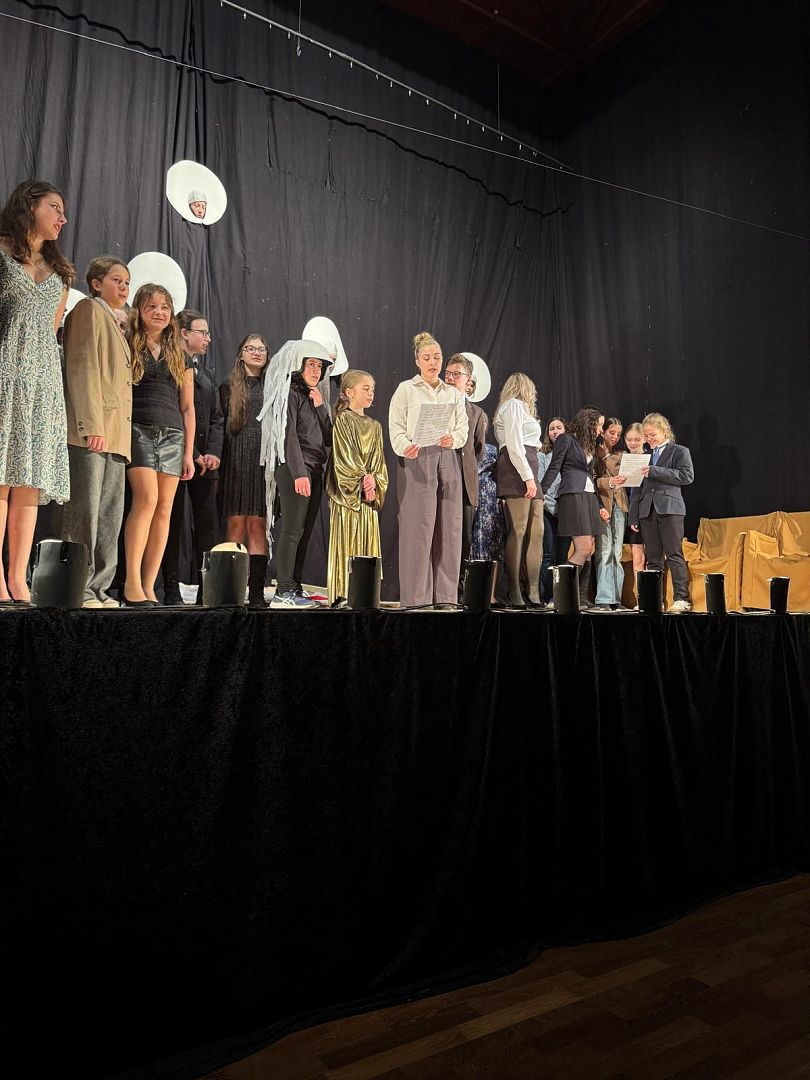 Ein besonderes Element war der Gesang, der von den Schülerinnen und Schülern selbst übernommen wurde. Dieser klang stellenweise etwas ungewohnt, passte jedoch gerade dadurch gut zur Inszenierung und unterstrich den besonderen Charakter der Aufführung. Das Ende des Stücks kam recht abrupt, was zusätzlich Interesse weckte.