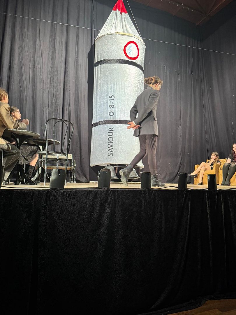 Die Inszenierung orientierte sich stark am Original, wurde jedoch geschickt an die heutige Zeit angepasst. Dadurch wirkte die Handlung nicht nur verständlich, sondern auch besonders aktuell. Im Mittelpunkt steht die drohende Katastrophe durch einen Kometen – und die Frage, wie die Menschen darauf reagieren. Statt Zusammenhalt und Vernunft dominieren Egoismus, Machtdenken und Ablenkung, was dem Stück eine nachdenkliche Tiefe verleiht.