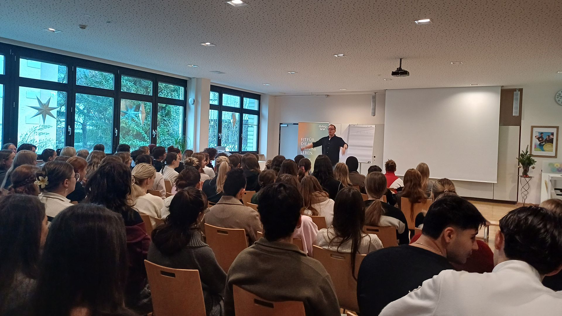 Besonders interessant war, dass er nicht nur theoretisches Wissen vermittelte, sondern auch praktische Tipps und Lernstrategien vorstellte, mit denen man sich Inhalte besser merken kann. Der Vortrag war abwechslungsreich gestaltet, da Manuel Rothwald die Schülerinnen und Schüler aktiv miteinbezog, Fragen stellte und Alltagsbeispiele erzählte. Dadurch blieb der Vortrag spannend und leicht verständlich.