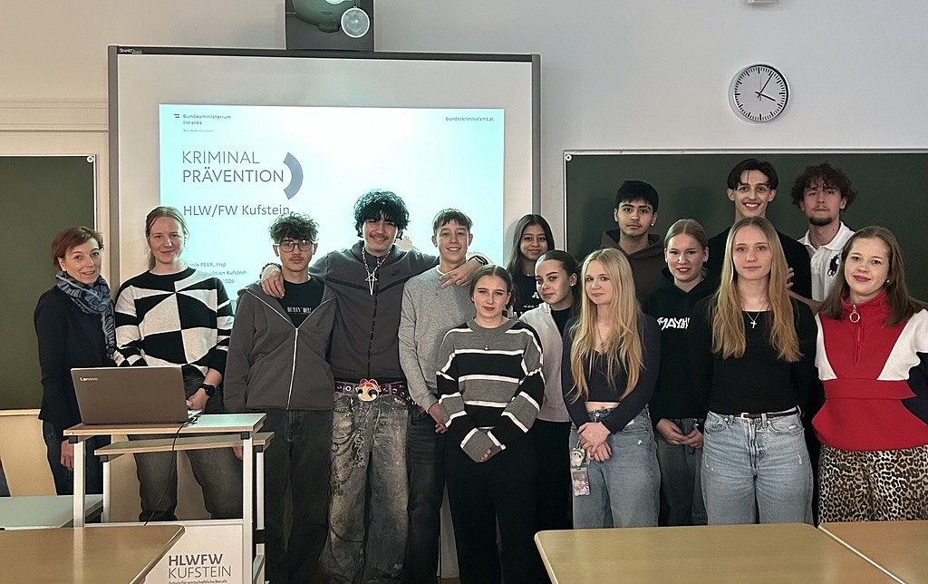 Am Dienstag, den 20. Jänner 2026 kam Frau Inspektorin Nicole Peer, von der Stadtpolizei Kufstein zu uns an die Schule, um in der 2FW Klasse über die Tätigkeiten von Polizistinnen und Polizisten im Bereich des Jugendschutzgesetzes, über gesetzeswidrige Straftaten wie zum Beispiel Cybermobbing, dem Strafausmaß und Präventionsmaßnahmen aufzuklären.