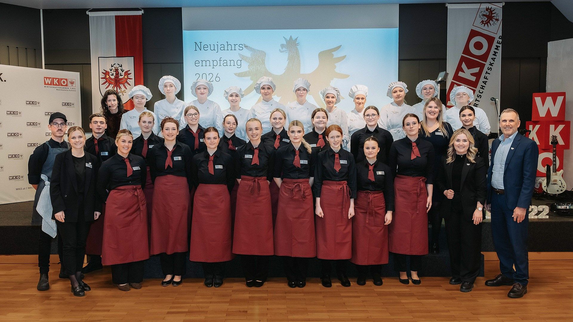 Der Neujahrsempfang der Wirtschaftskammer Bezirksstelle Kufstein wurde durch den kulinarischen Beitrag der HLW FW Kufstein genussvoll umrahmt. Schüler:innen übernahmen Buffet und Service und überzeugten die Gäste aus Wirtschaft und Politik mit fachlicher Kompetenz, Engagement und Freundlichkeit.