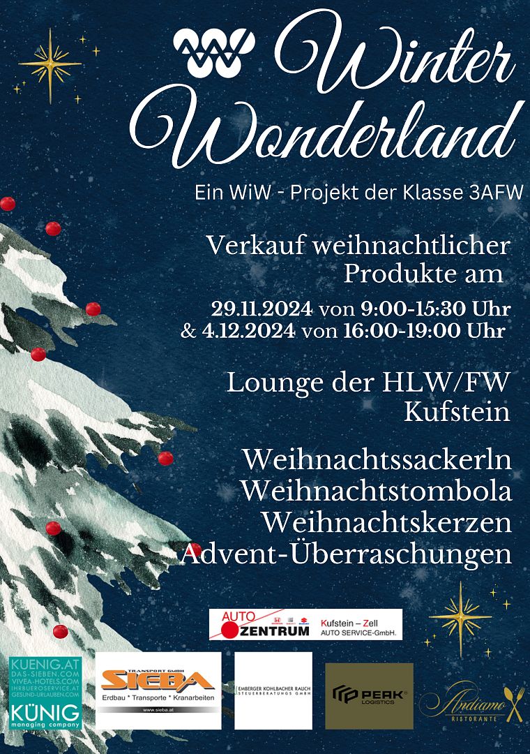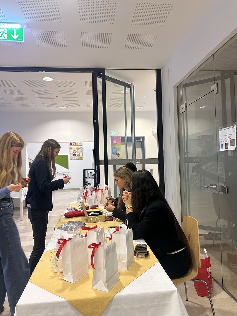 Im Rahmen des WIW-Unterrichts organisierte die dritte Fachschule unter der fachlichen Anleitung von Mag. Brigitte Lechner und Mag. Georgia Steinbrugger einen Verkauf selbst hergestellter Produkte. Auf Initiative der Schülerinnen wurden handgefertigte Adventüberraschungen sowie weihnachtliche Dekorationsartikel am Tag der offenen Tür und am Elternsprechtag zum Verkauf angeboten. Die Nachfrage war groß, und die angebotenen Produkte fanden zahlreiche begeisterte